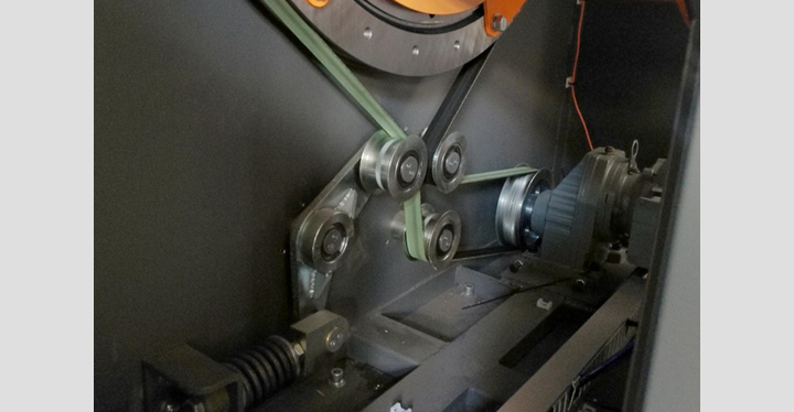 小黄蜂S600缠绕机的Airtac缸体采用双滚轮托住产品顶部,确保产品进入机器时的稳定性。