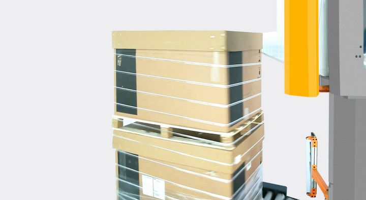 采用全新设计的上切膜系统,托盘包装完成后,尾部将托盘密封完美。