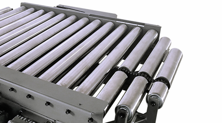 与前后输送线的过度滚筒采用链条传动式,避免了传统无动力过度滚筒前后输送线在衔接输送过程中的动力中断造成的卡顿问题。