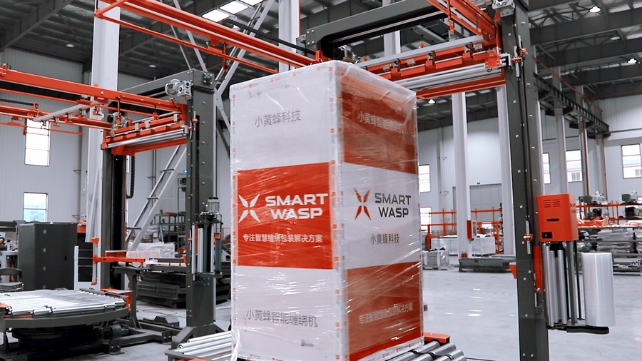 小黄蜂智能在线缠绕机的全新断膜系统,彻底解决传统缠绕机在断膜后尾部缠绕膜脱落的问题,让缠绕膜断膜覆膜系统一体成型,尾部缠绕膜与托盘完美结合。